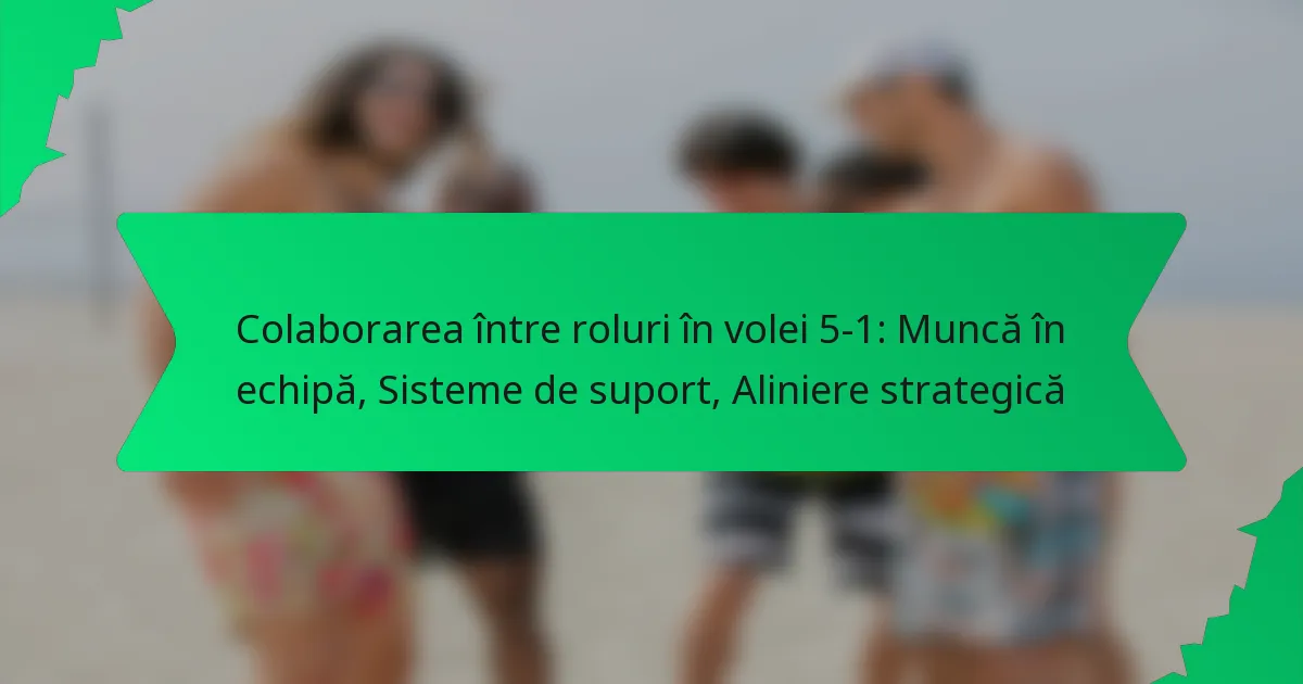 Sistemul de volei 5-1, care include cinci atacanți și un organizator, se bazează în mare măsură pe colaborarea între membrii echipei pentru a optimiza performanța. Prin promovarea muncii în echipă, îmbunătățirea comunicării și alinierea strategiilor, jucătorii pot executa mai eficient jocurile și se pot adapta tacticilor adversarilor. Sistemele de suport, cum ar fi exercițiile structurate și antrenamentul eficient, întăresc și mai mult acest mediu colaborativ, promovând atât creșterea individuală, cât și cea colectivă pe teren.