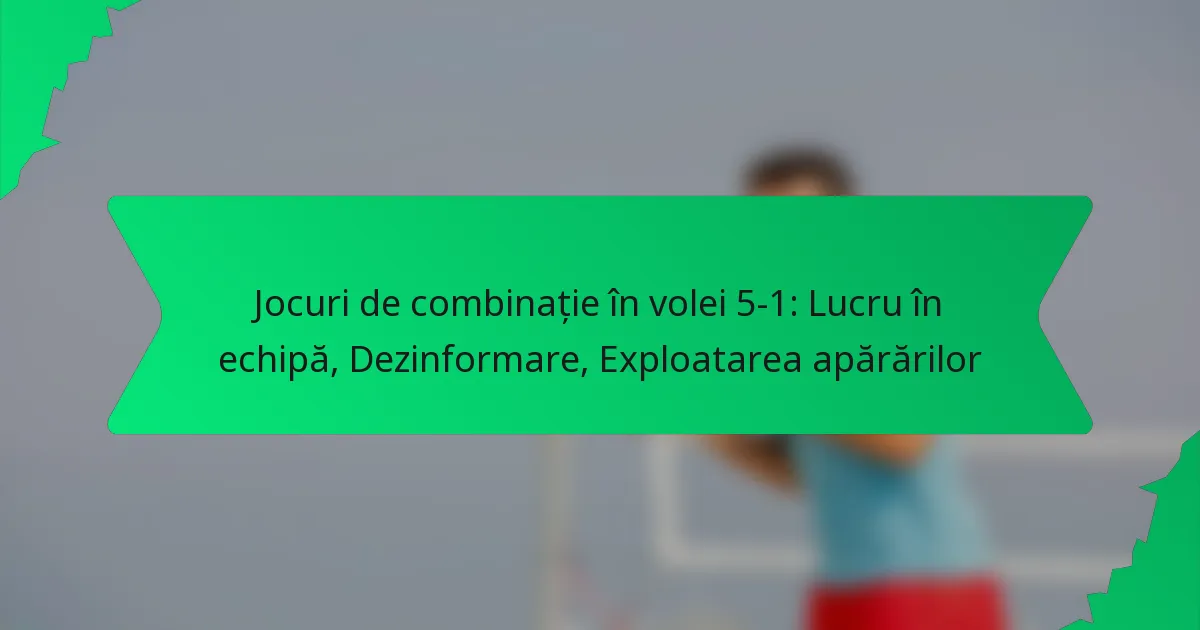 Jocurile de combinație eficiente într-un sistem de volei 5-1 se bazează pe munca în echipă, dezinformare și exploatarea slăbiciunilor defensive. Aceste jocuri îmbunătățesc strategiile ofensive prin crearea de oportunități de punctare, menținând în același timp echipa adversă în echilibru.