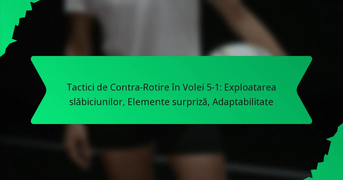 Tacticile de contrarotire în voleiul 5-1 implică o abordare strategică în care jucătorii își ajustează pozițiile pentru a exploata slăbiciunile echipei adverse. Această metodă îmbunătățește adaptabilitatea și elementele-surpriză, permițând echipelor să mențină un avantaj ofensiv pe parcursul meciului.