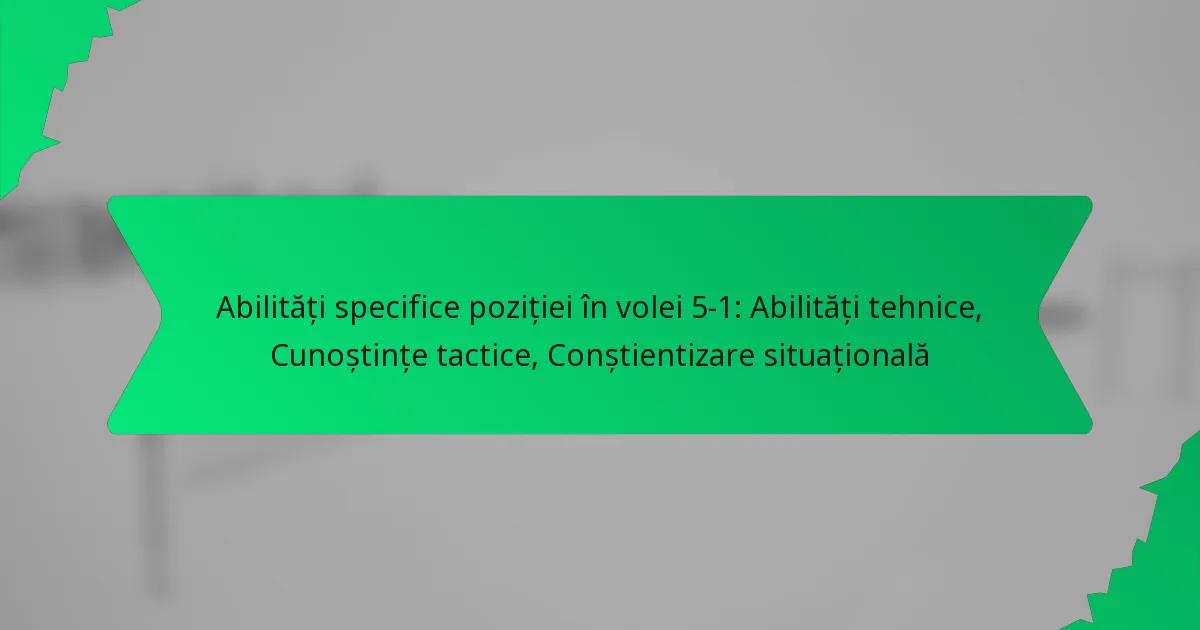 În voleiul 5-1, stăpânirea abilităților specifice fiecărei poziții este esențială pentru optimizarea performanței echipei. Fiecare rol necesită abilități tehnice unice, cunoștințe tactice și conștientizare a situației, care, împreună, îmbunătățesc comunicarea și luarea deciziilor pe teren. Prin înțelegerea acestor aspecte critice, jucătorii pot contribui eficient la succesul echipei lor și se pot adapta la natura dinamică a jocului.