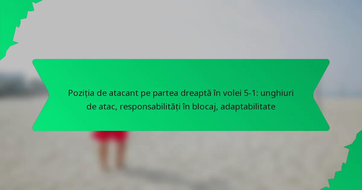 Atacantul din partea dreaptă într-un sistem de volei 5-1 este esențial atât pentru strategiile ofensive, cât și pentru cele defensive. Această poziție necesită stăpânirea unghiurilor de atac pentru a optimiza oportunitățile de punctare, preluând în același timp responsabilități semnificative de blocare. În plus, adaptabilitatea este cheia, deoarece atacantul din partea dreaptă trebuie să se ajusteze rapid la diferite situații de joc și dinamici de echipă pentru a menține un joc eficient.