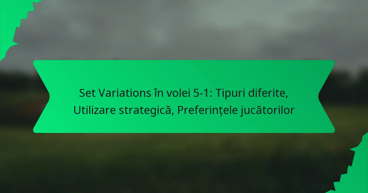 În voleiul 5-1, variațiile de seturi sunt cruciale pentru crearea oportunităților ofensive. Aceste variații includ seturi înalte, seturi rapide, seturi din linia din spate, seturi combinate și dump-uri ale setter-ului, fiecare având un scop tactic specific pentru a depăși echipa adversă.