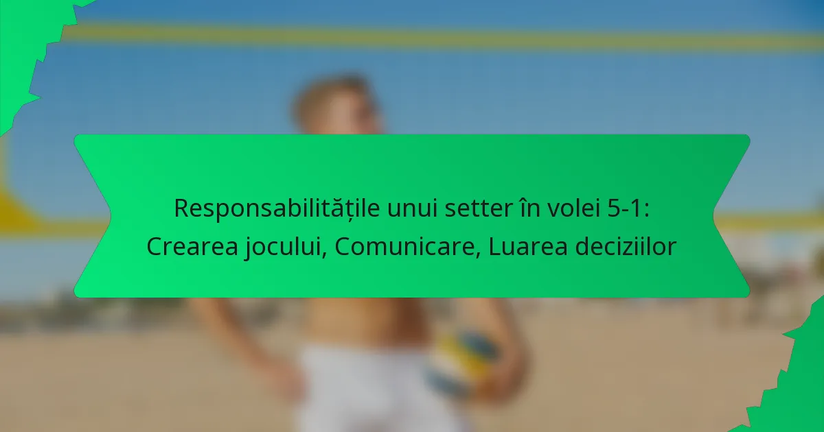 Responsabilitățile principale ale unui coordonator într-un sistem de volei 5-1 includ orchestrarea jocurilor, facilitarea comunicării între colegii de echipă și luarea rapidă a deciziilor pentru a optimiza oportunitățile de punctare. Coordonatorul acționează ca principalul organizator de joc, asigurând o distribuție eficientă a mingii și menținând dinamica echipei pe parcursul meciului.