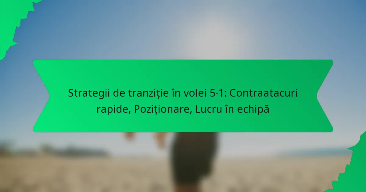 În voleiul 5-1, stăpânirea strategiilor de tranziție este esențială pentru maximizarea oportunităților de scor și menținerea ritmului jocului. Contraatacurile rapide, poziționarea strategică și munca în echipă eficientă joacă roluri esențiale în trecerea rapidă de la apărare la atac, permițând echipelor să profite de slăbiciunile adversarilor. Concentrându-se pe aceste elemente, jucătorii își pot îmbunătăți performanța generală și pot obține un succes mai mare pe teren.